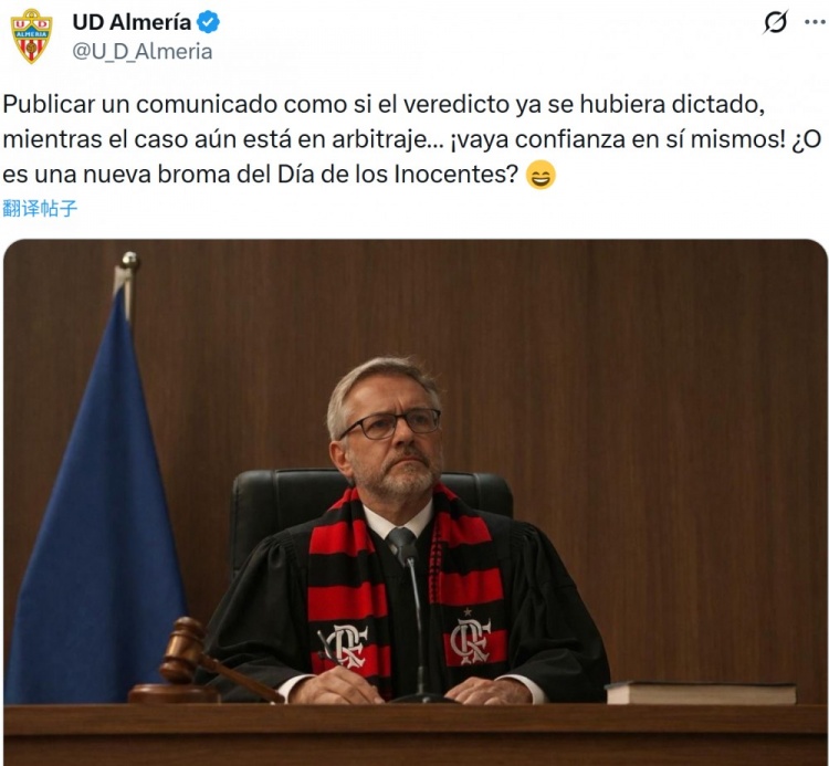 弗拉门戈发声明追讨180万欧欠款 阿尔梅里亚官推强硬回怼
