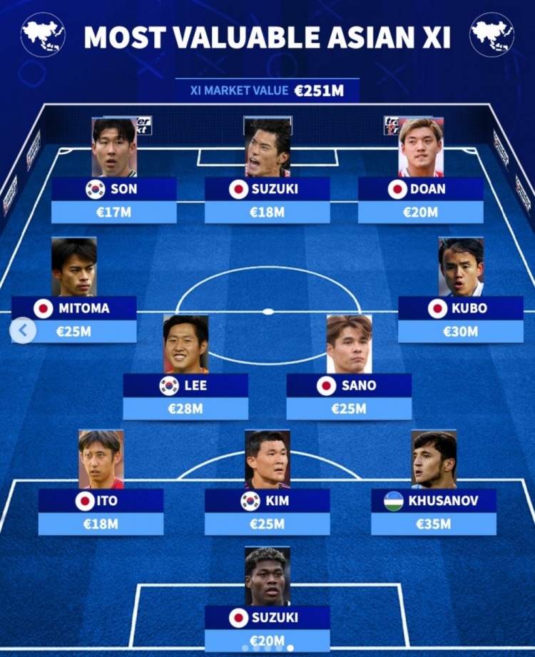 德转亚洲最贵阵容出炉 总身价2.51亿欧日本七将入围